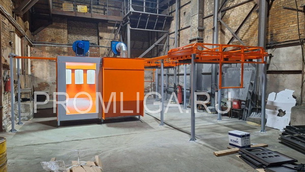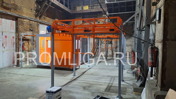 | Полукольцевая линия порошковой окраски с верхней транспортной системой