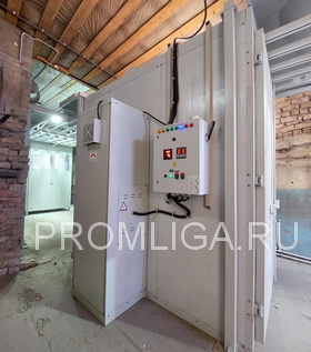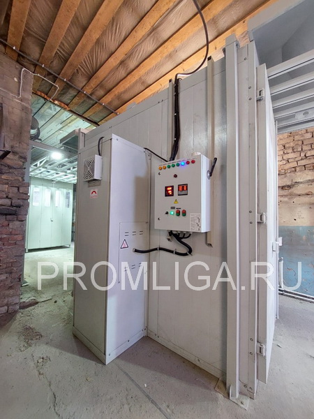 Установку требуемой температуры и времени выдержки процесса полимеризации осуществляется с пульта управления, который устанавливается с наружи камеры на боковой стенке. Так же пульт управления может быть вынесен за пределы участка порошковой покраски.